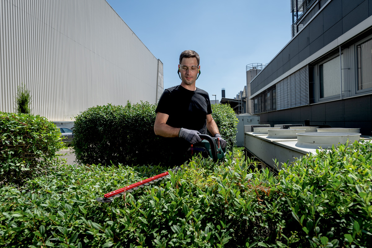 Krachtige, borstelloze accu-heggenschaar met draaibare greep voor comfortabel trimmen en snoeien
