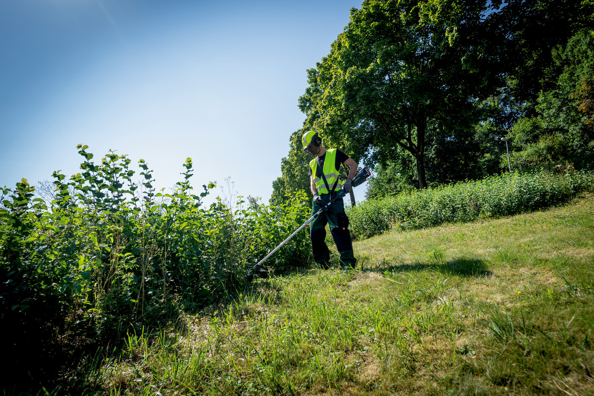 Maaien, trimmen, uitdunnen met het bosmaaier-opzetstuk uit het multifunctionele systeem van Metabo, de all-in-one-oplossing voor heel veel werkzaamheden in de tuin