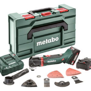 Invalzaagblad 32 mm HCS (hout), Driehoekschuurzool 93 mm met klithechting, 5 hechtschuurbladen 93 mm P 80, 5 hechtschuurbladen 93 mm P 120, Afzuigadapter, metaBOX 145 L, Zonder accu-pack, zonder lader