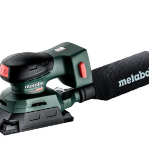 Schuurzool 80×133 mm met klithechting, Protector 80×133 mm, 1 hechtschuurblad P 120 hout en metaal “professional” (80×133 mm), Stoffen stofzak, Inbussleutel, metaBOX 215, Zonder accu-pack, zonder lader