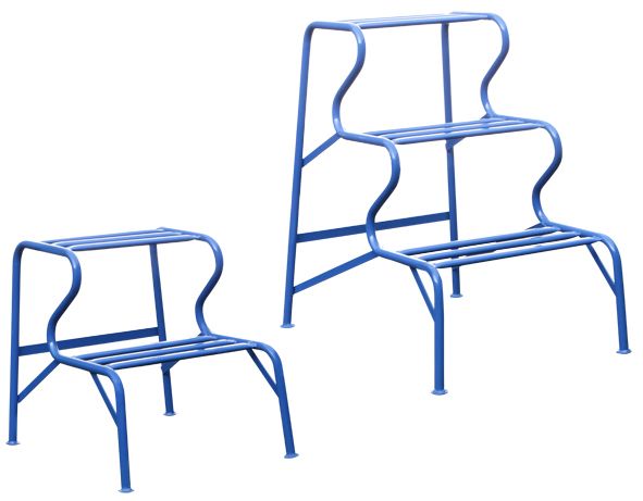 Gelakt stukadoorsbankje met aan één zijde 2 of 3 treden.