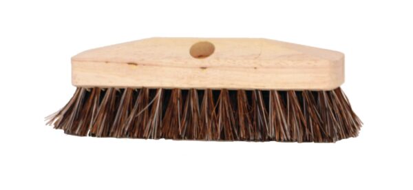 Luiwagen van ongelakt blank hout voorzien van natuurlijke union (bassine, fiber en cocos) vezels. Met name geschikt voor het schuren en schrobben van harde, gladde vloeren zoals tegels en betonvloeren.