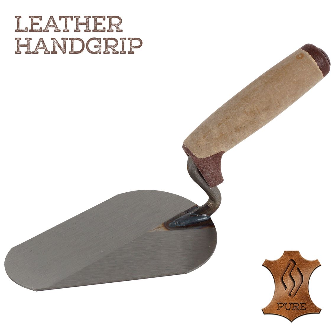 De Pure metseltroffels van Super Prof zijn voorzien van een ergonomische lederen handgreep met vingerbescherming, welke het vocht beter opneemt. Hierdoor krijgt men een betere grip en worden het werkcomfort en de productiviteit bevorderd.Â